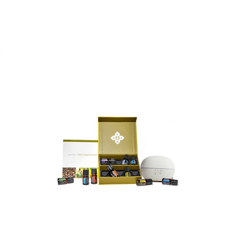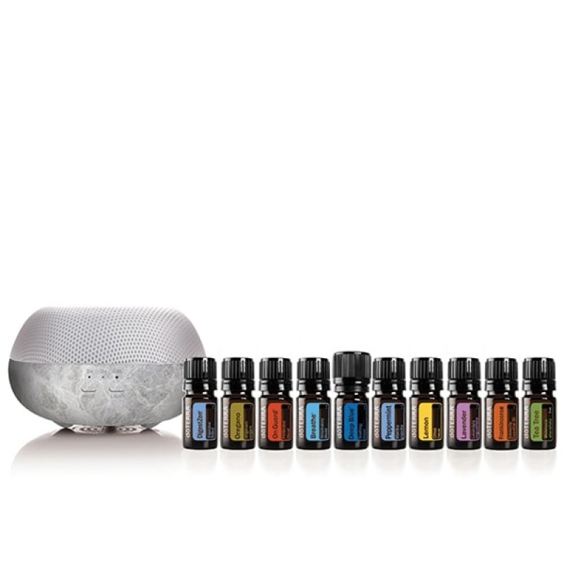 Регистрационный набор "Здоровое начало" состоит из 6 эфирных масел по 5 мл (Лаванда, Лимон, Мята перечная, Чайное дерево, Орегано, Ладан), 4 смесей по 5 мл (Deep Blue®, doTERRA Breathe®, doTERRA On Guard®, DigestZen®) и диффузора Brevi® Stone.